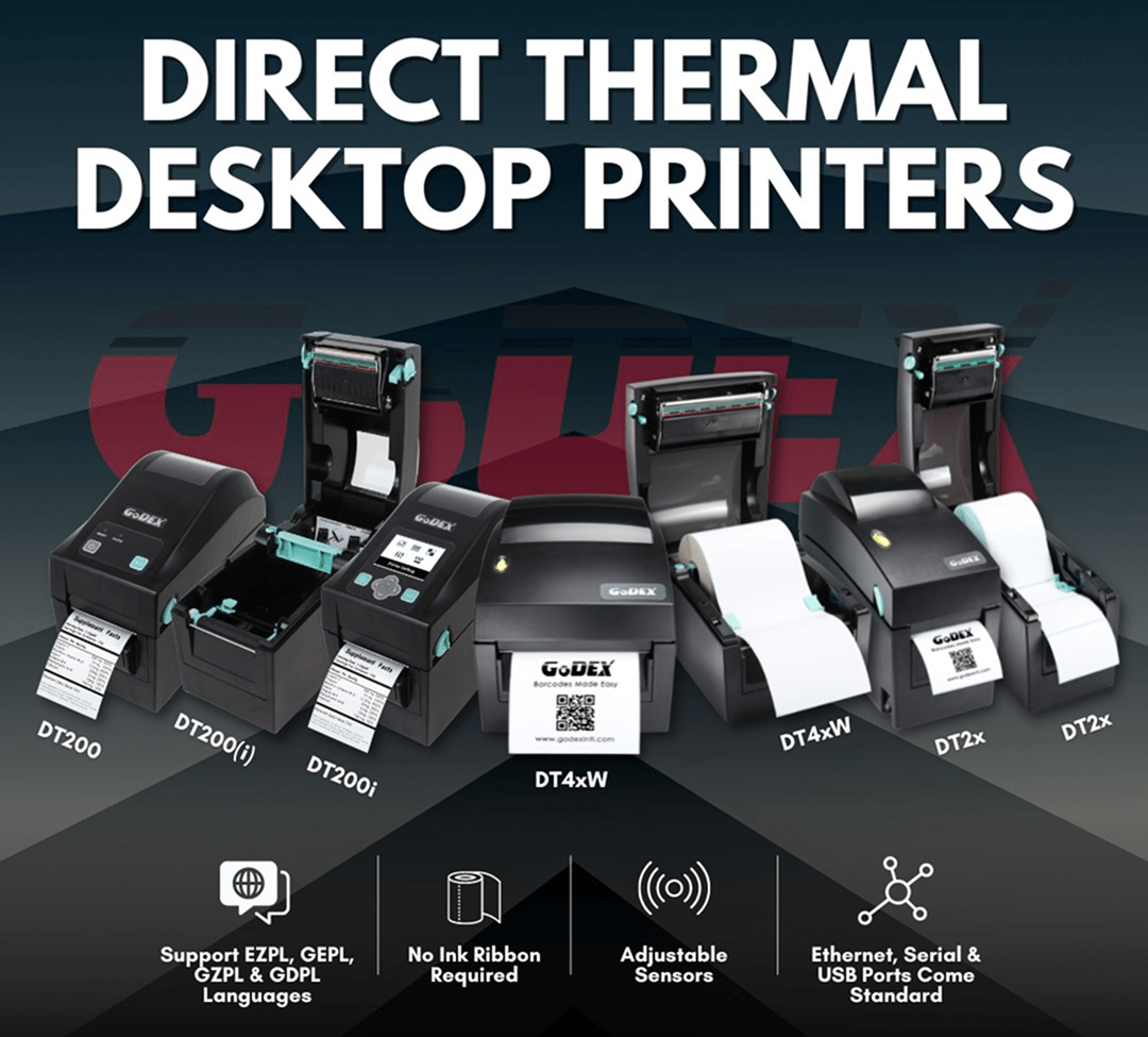 We offer a full range of Direct Thermal Printers, including both desktop units and heavy-duty industrial models.