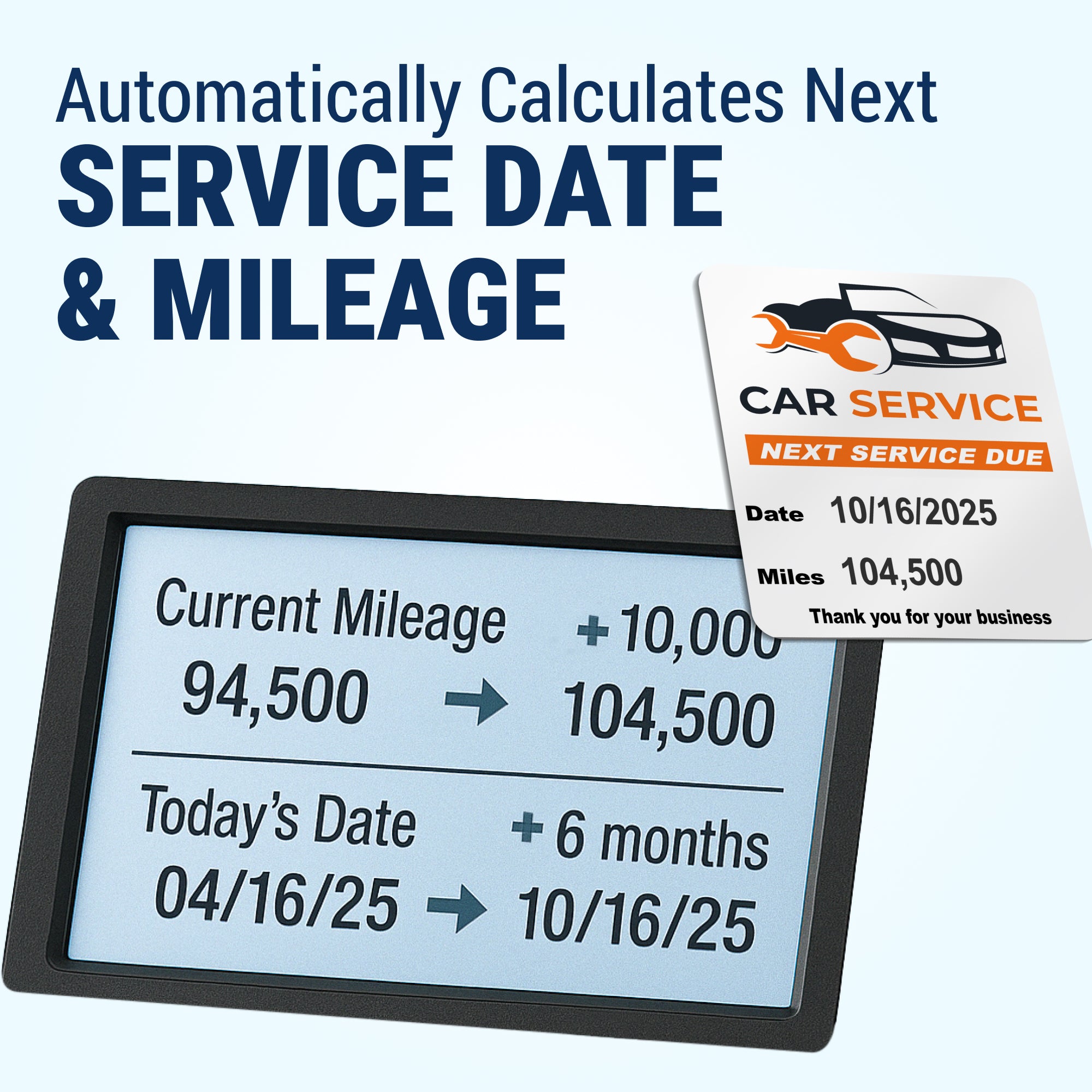 The system automatically calculates the next oil change date and prints it clearly on each label. That means fewer manual errors, faster workflow, and a more professional customer experience at every visit.