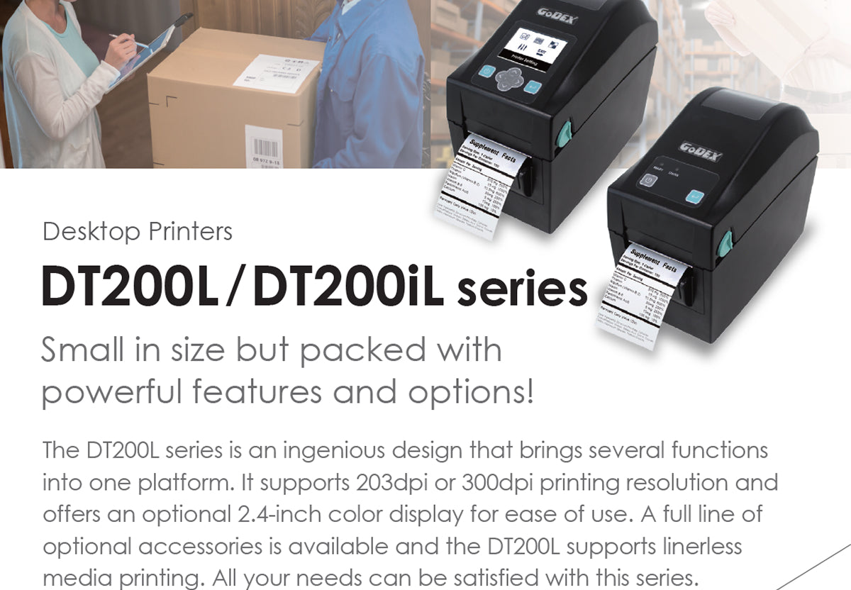 Need a 203 DPI linerless version? Try the GoDEX DT200L – 2″ Linerless Printer for cost-effective labeling.