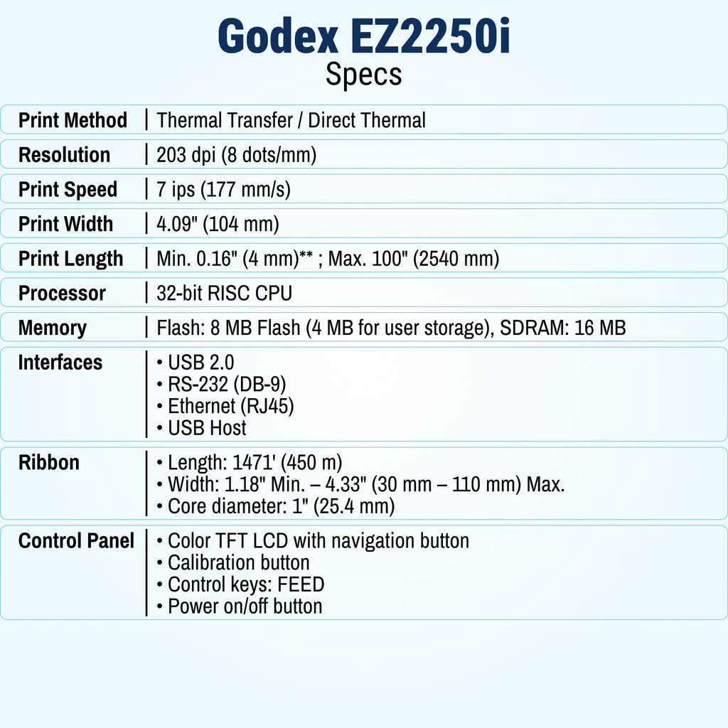 GoDEX EZ2250i Thermal Printer – 4″ Industrial Dual Thermal Printer for Heavy-Duty Labeling