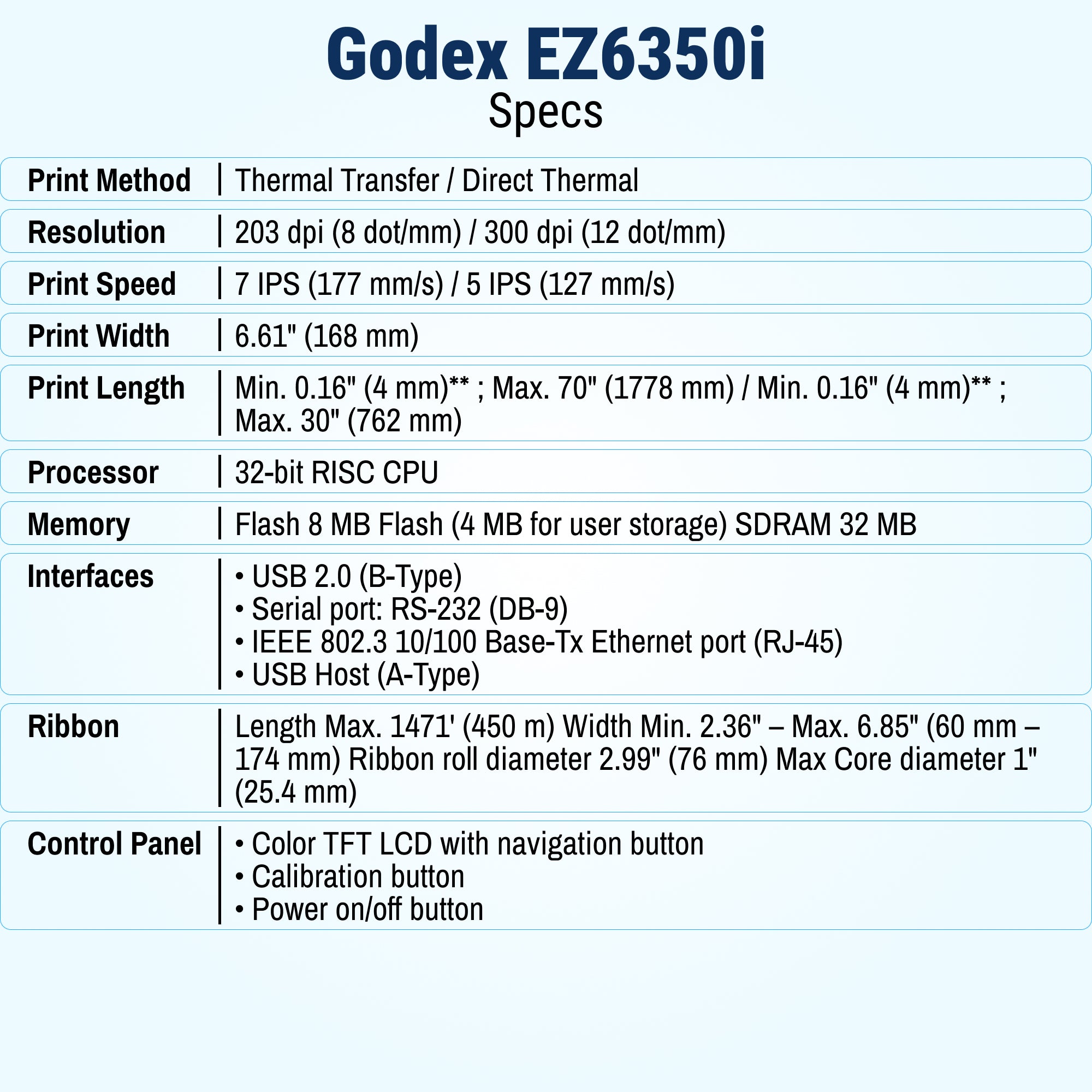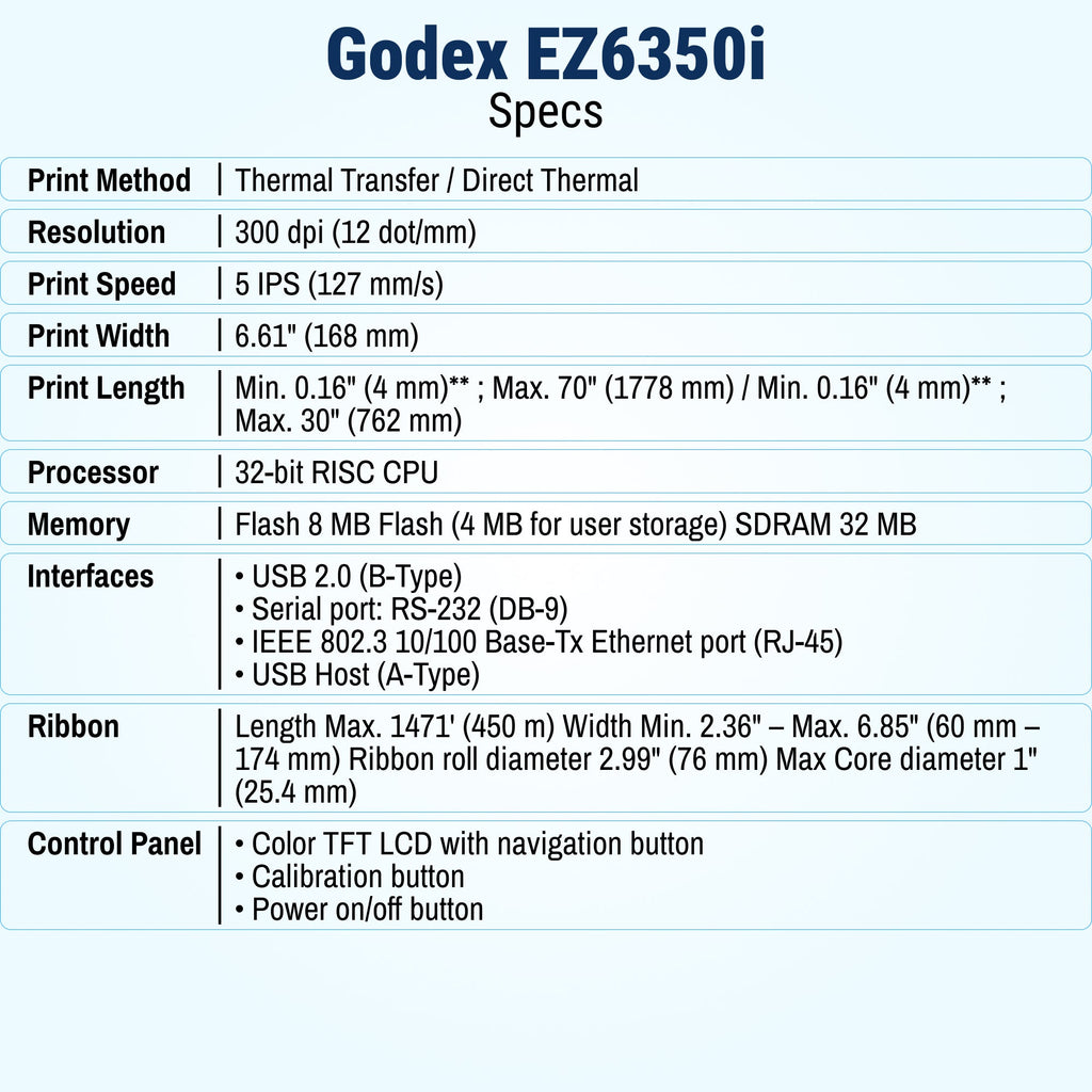 GoDEX EZ6350i Thermal Printer - 6" 300 DPI, 2-in-1 Industrial Label Printer with 3-Year Warranty