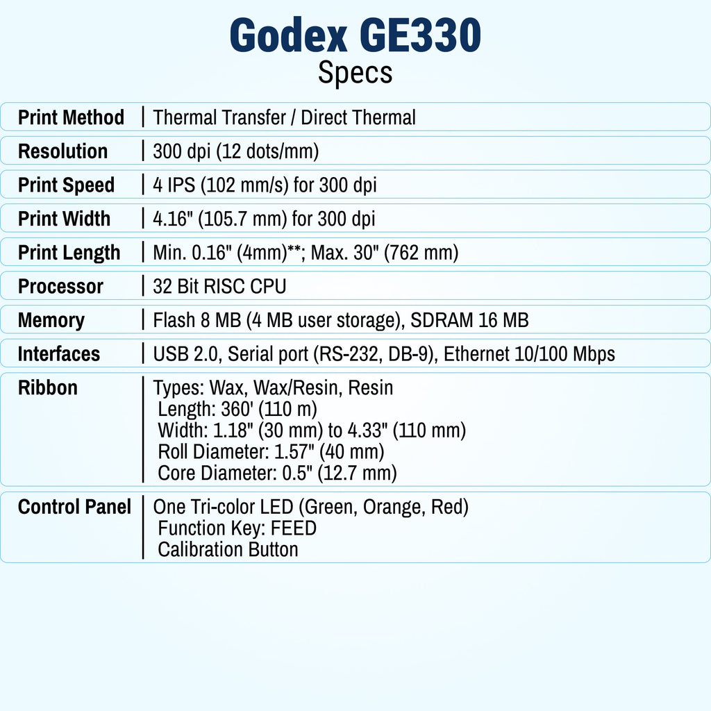 GoDEX GE330 Thermal Transfer Printer - High-Resolution 4” Barcode Printing