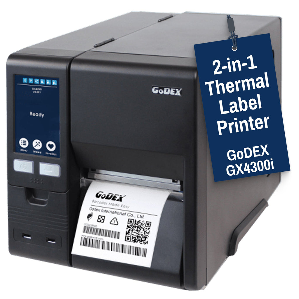 GoDEX GX4300i Thermal Printer - 4" 300 DPI High-Resolution, USB/Serial/Ethernet | 3-Year Warranty