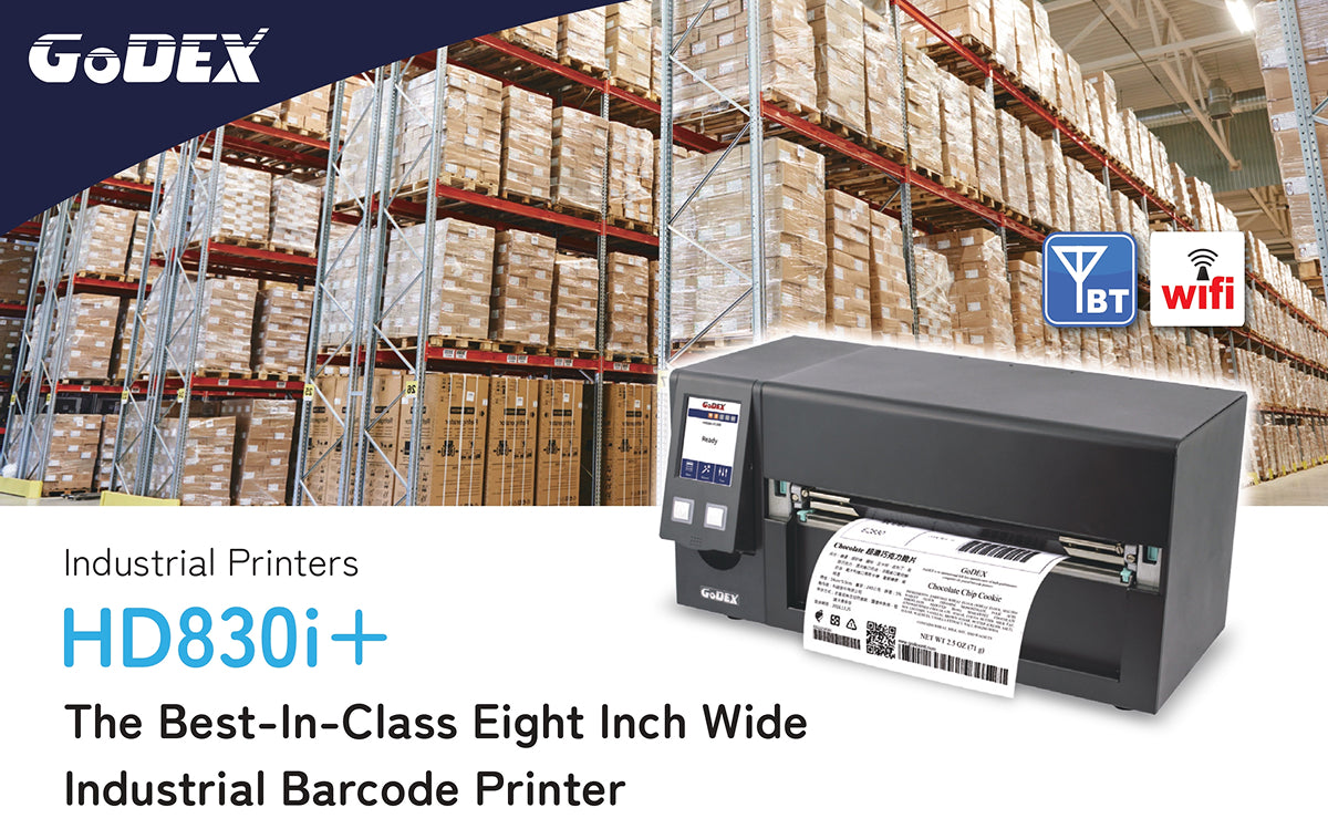 GoDEX HD830i+ Thermal Printer - 8" Wide, 300 DPI Industrial Barcode Label Printer | 3-Year Warranty