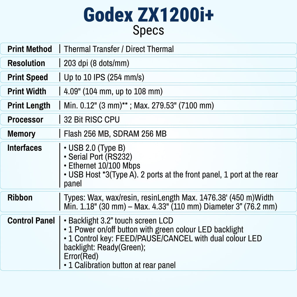 GoDEX ZX1200i+ Thermal Printer - 4" 203 DPI | 2-in-1 Industrial Label Printer - 3-Year Warranty