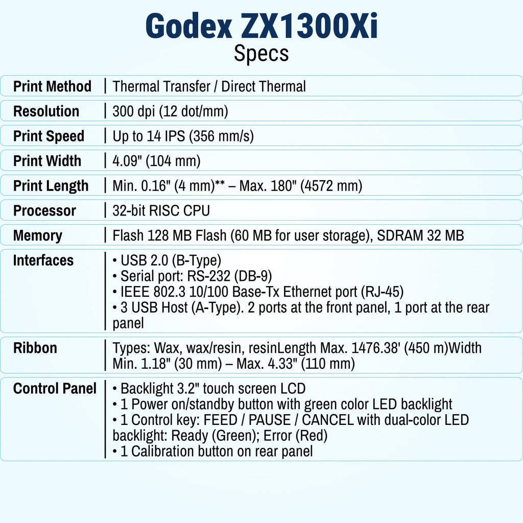 GoDEX ZX1300Xi Thermal Printer – 300 DPI, Up to 14 IPS Industrial Label Printer with 3-Year Warranty