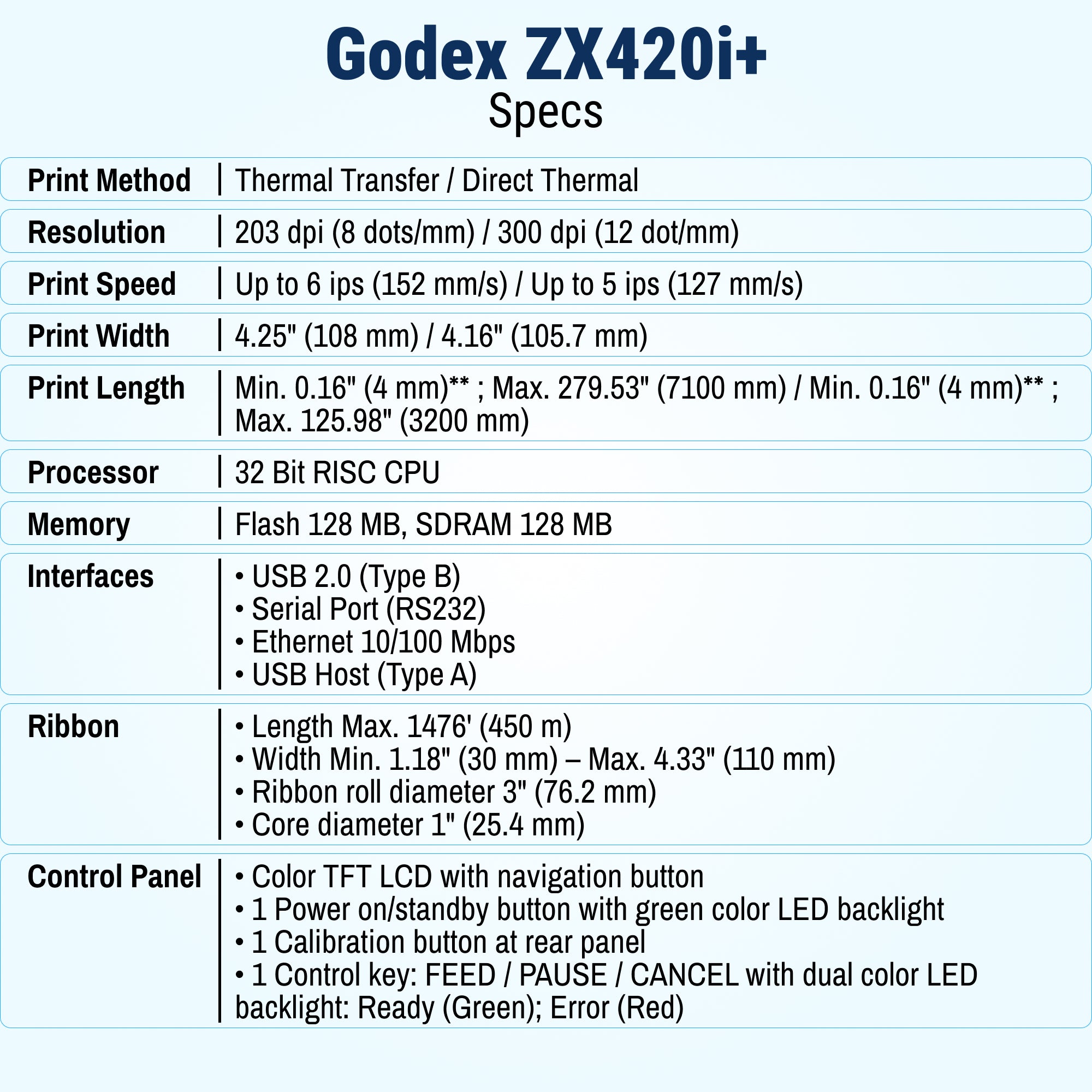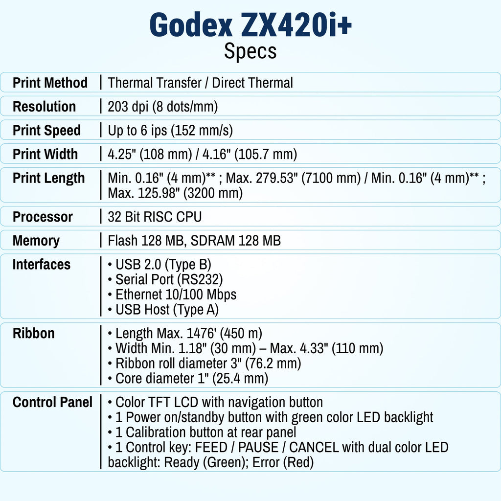 GoDEX ZX420i+ Thermal Printer – 4″ Industrial Dual Thermal Printer for High-Volume Labeling