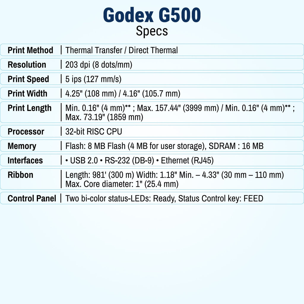 Ribbon Printer - GoDEX G500 Thermal Transfer Printer 4" 203 dpi